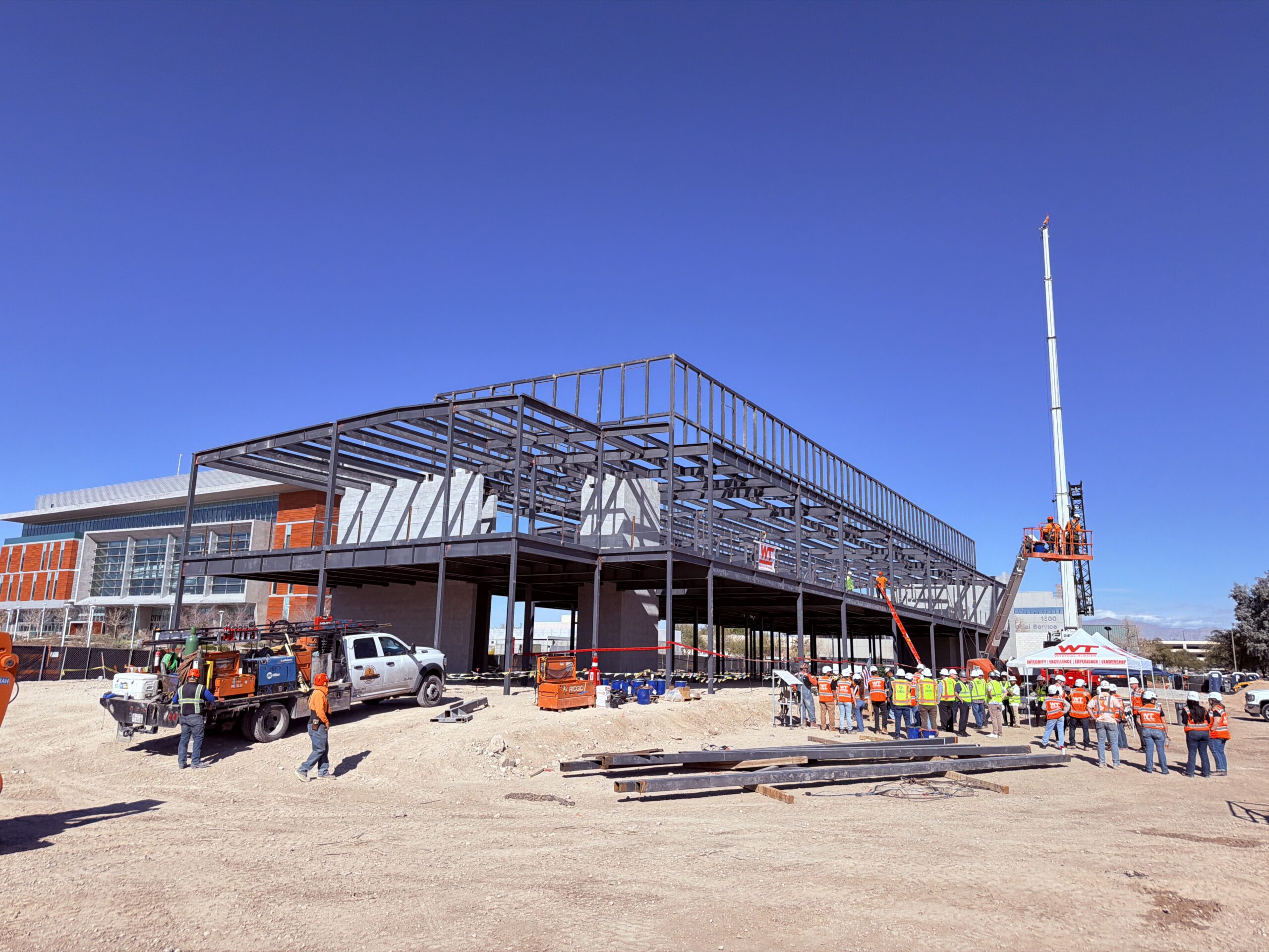 Final steel beam signifies transition from site work to vertical construction in the Las Vegas Medical District